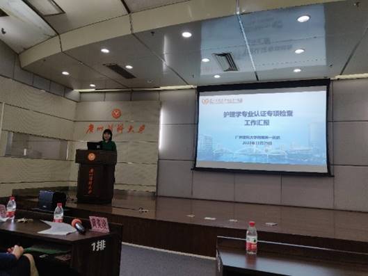 会议伊始,黄美凌副院长对11月19日至20日的专项检查工作进行了总体汇报,强调临床教学基地是护理学专业教育教学过程的重要环节,各教学基地应梳理好教学资料,展现各院教学特色,积极配合我校做好护理学专业的准备工作。
