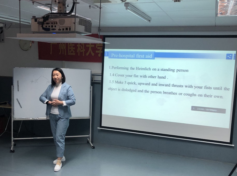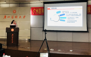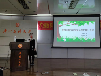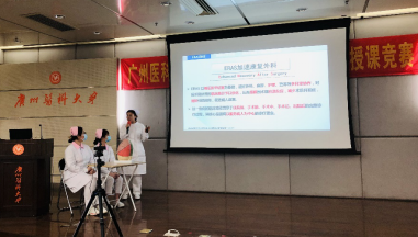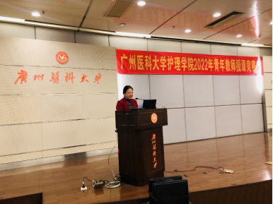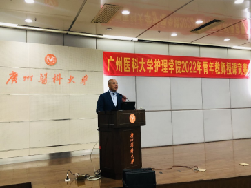 周英院长英语致辞。她感谢了各位与会领导及专家,并指出,我校护理学专业从2006年以来在部分医学基础课程及专业课程中坚持实施双语教学,提高了学生的英语能力及跨文化护理能力。她强调,青年教师是护理教育的希望,抓好青年教师队伍建设,不断提高教师的业务能力与综合素质是提高教育质量的重要内容,本次教学竞赛是检验教师教学能力的机会,希望各位参赛选手能够赛出水平、赛出风格、赛出风采,取得好成绩。