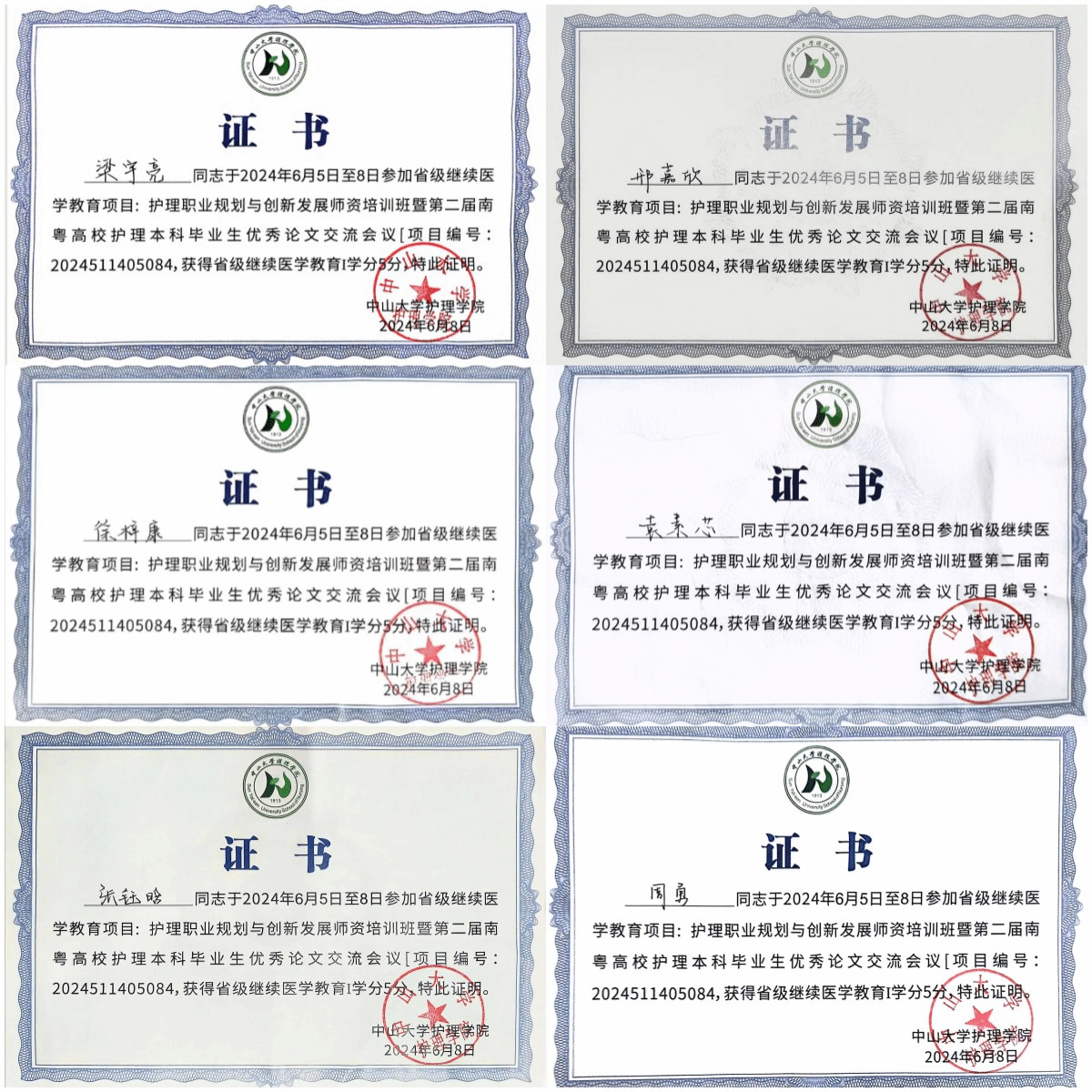 赌博平台6名本科生获第二届南粤高校护理本科毕业生优秀论文交流会学习证书