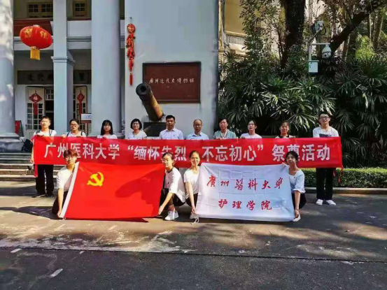 学生党支部由欧丽娅书记带队,组织学生党员、预备党员、入党积极分子到广州起义烈士陵园开展“不忘初心,缅怀英烈”祭奠活动。