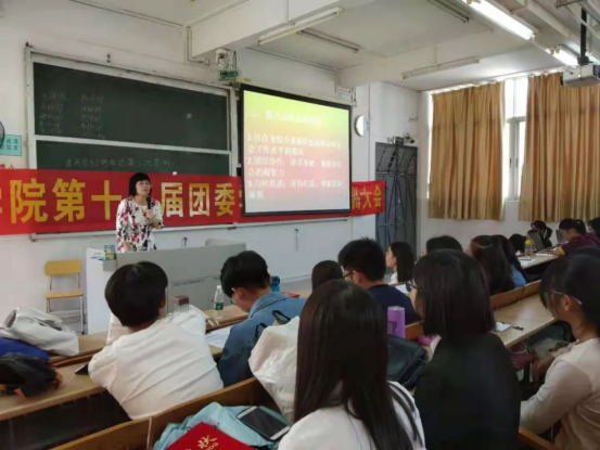 接着,学生办的欧丽娅主任做了为题“树新风、展新貌、做新时代的优秀学生干部”的讲话,强调了学生干部三大要求,学生干部七大能力,并简单地对各部门的实际工作提出要求。欧丽娅主任还提出了几点对学生干部的要求和希望,且着重强调学习的重要性。