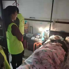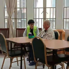 同学们有序分工,在养老院一楼、三楼及五楼为老人家量血压,与老人家唠唠家常,了解老人家日常起居生活,引导老人家适当进行活动。其中,一位老党员同志给志愿者们分享了她年轻时候的照片以及闪亮的“七一纪念奖章”。几位同学与老人家围桌而坐,忆往昔,畅未来,氛围和睦,恰似一幅天伦之乐安康之图。