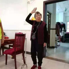 在为各楼层爷爷奶奶量血压后,同学们在一楼空地组织了一场益智小游戏和歌曲传唱活动。通过“大西瓜小西瓜”、“嘴巴手指不一样”等益智小游戏带动老人家转转脑筋、动动手。活动现场,老党员同志与学生党员、团员及所有爷爷奶奶共同吟唱了《学习雷锋好榜样》、《歌唱祖国》等。在即兴互动中,学生志愿者发挥自己特长,为养老院老人家带来了自己擅长的歌曲《军中绿花》、《精忠报国》等。
