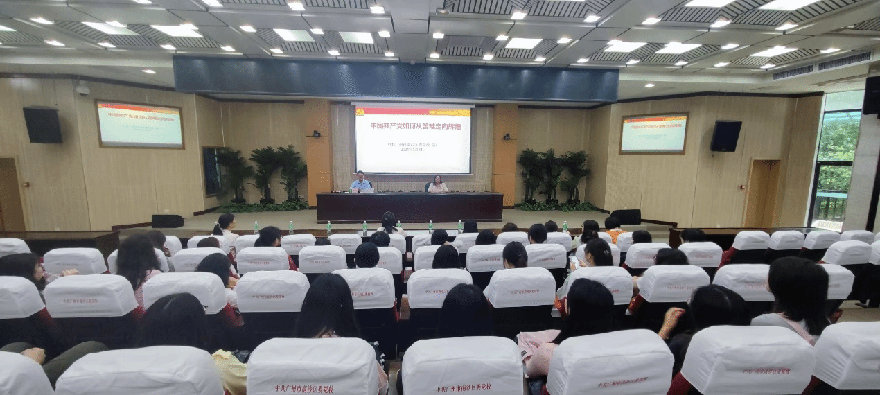 下午,全体师生党员及入党积极分子到达南沙区委党校开展党纪学习教育专题培训,本次培训邀请南沙区委党校常务副校长吴仁讲授专题讲座。吴仁副校长以《中国共产党如何从苦难走向辉煌》为题,按时间脉络,深入浅出地讲述中国共产党100多年艰苦卓绝、波澜壮阔的光辉历程,让大家对党史有了更加全面、深刻的认识,同时通过学习了解党的优良传统和纪律教育经验,进一步提升了广大师生党员学纪、知纪、明纪、守纪的思想自觉与行动自觉。