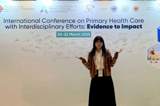 和导师的栽培,以及伙伴们的支持配合。汇报时难免紧张,但能完整流畅的脱稿表达,使我获得了宝贵的信心。两天的全英文学术交流深刻提醒我外语能力的重要性,而各国学者对基层医疗的热忱更拓宽了我的专业视野。与教授们的深入交流促使我重新思考职业规划,明确了未来发展方向。尽管未能获奖,但这段经历本身就是最好的礼物——它让我明白学术之路需要持续探索,每一次尝试都是成长的积淀。感恩所有相遇,这段旅程将永远激励我在医疗卫生领域继续前行。