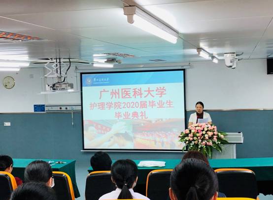 领导和全体教职员工致辞。她回忆了2020届毕业生在校期间的点点滴滴,尤其表扬了在新冠肺炎疫情期间多名毕业班同学义不容辞地投身