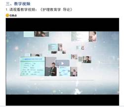e平台,学习由罗艳华教授录制的《护理教育学》第一章导论视频、李桃副教授录制的《护理教育学》第二章护理教育的目标体系、第四章护理教育的课程的视频。要求学生通过以上学习能够基本熟悉各章节的内容并进行自主预习效果测验,同时记录自主学习过程中存在的问题。