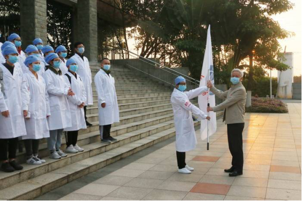 根据上级要求,1月30日我校开始组建学生志愿队伍,征集志愿者的消息发出后,赌博平台学生踊跃响应报名,共有8名护理学专业的学生加入首批志愿队伍,他们在指导老师和辅导员的带领下,分班次前往广州南站等广州主要交通站点开展测量体温等志愿服务。2月1日志愿者出征仪式上,学校党委书记冉丕鑫为队伍授旗,王新华校长等学校领导为队伍助威壮行。