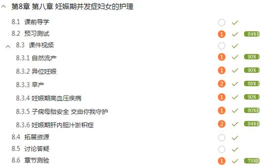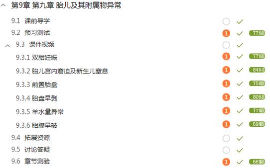 (6)章节测验 从本教学团队自建题库中选题,并请授课教师补充妇产科护理学相关测试题,用形成性评价的模式促进学生学习,其中试题题型多样化,包括单选、多选、填空、判断、名词解释、解答题。并且设置学生提交后可以观看答案,以考促学。教师及时批阅答案,对于学习效果欠理想的学生,设置教学预警提示。