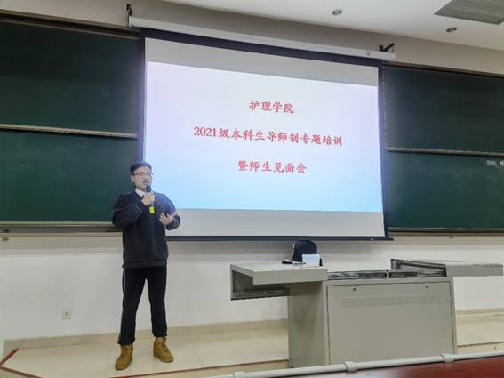 对各位导师上一年度的辛勤付出表示感谢。他强调本科生导师制对于充分发挥教师的主导作用和专业特长,实施学生个性化培养,构建全员、全过程、全方位育人体系具有重要意义。因此,各位本科生导师应坚持不懈做好思想价值引领、学业指导、生活关怀等方面的工作,着重培养学生职业认同感,为社会培养高质量的护理学专业人才。