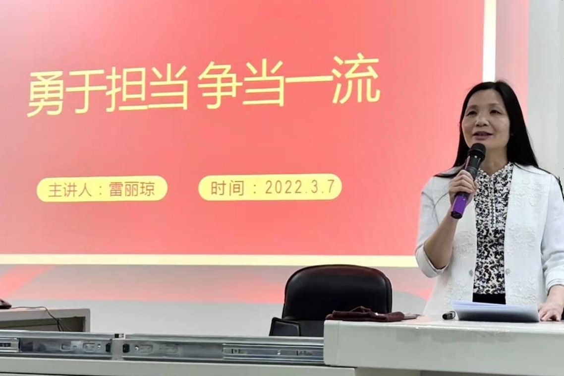 为认真落实广东省委教育工委、省教育厅关于高校党委书记、校长、院(系)党组织书记、院长(系主任)上第一堂思想政治理论课活动的要求,积极推进相关工作,赌博平台党总支雷丽琼书记于3月7日晚为2021级全体本科生讲授了题为《勇于担当 争当一流》的思政第一课。