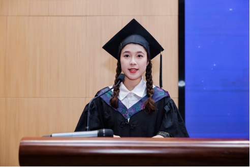 “2+2”联合培养项目首届毕业生代表钟可颖同学分享了在两地学习和生活的宝贵经历与成长感悟,表达了对母校和师长的感激之情。