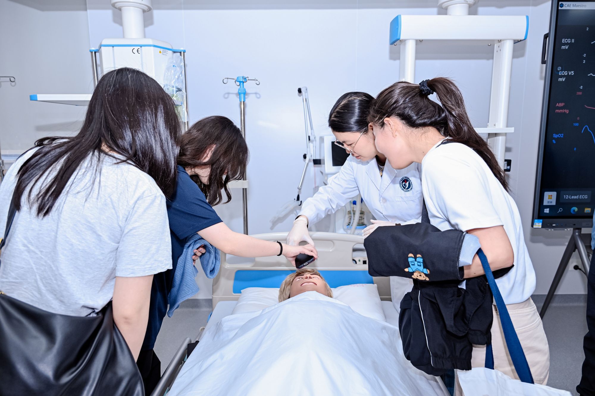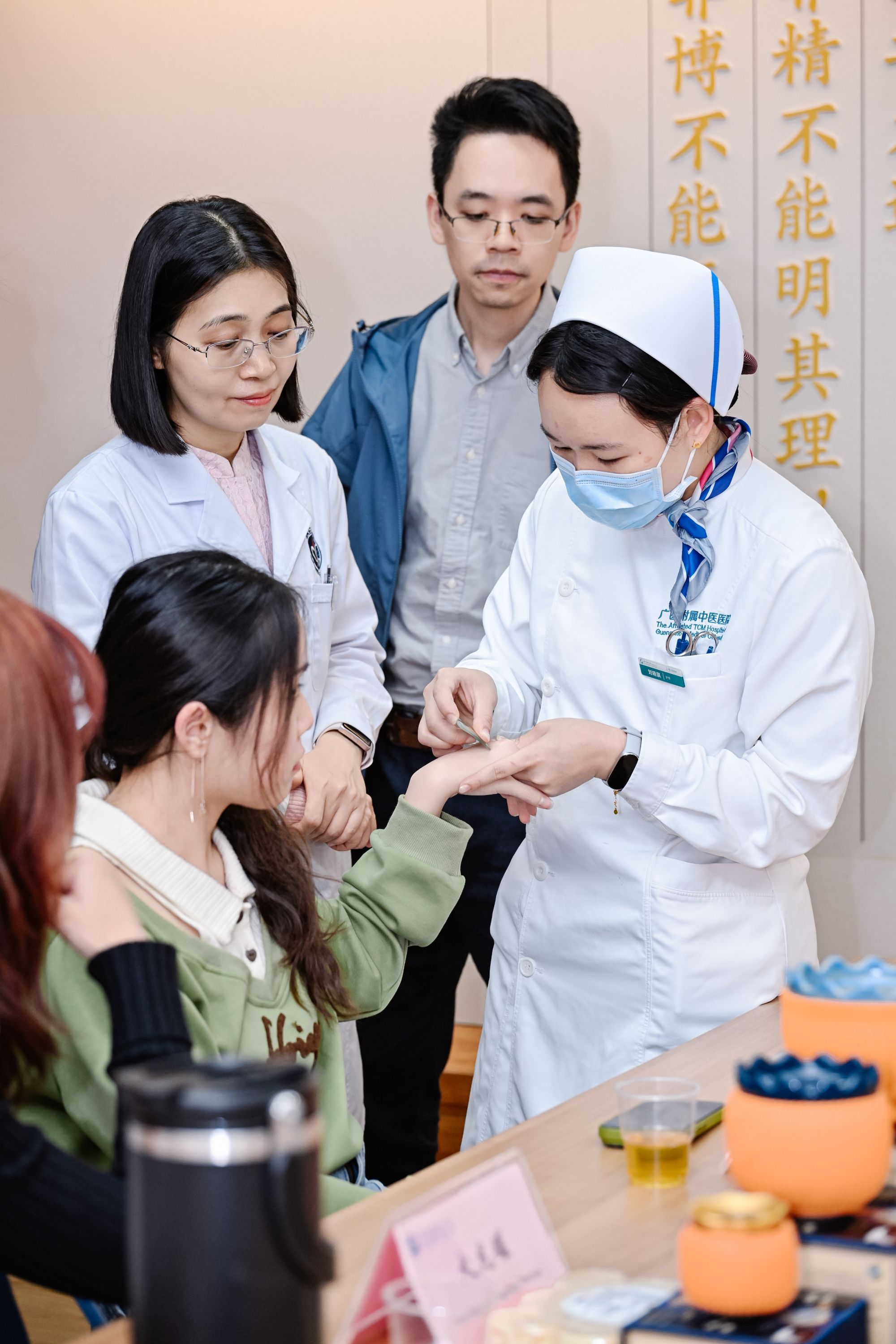在学生交流环节中,两校学子围绕中西医结合护理模式与临床实践等议题展开了深入讨论。来访师生还参观了我校医学模拟教育中心与科技展览馆等特色教学场所。在医学模拟教育中心,学生们亲身参与急症应急处置、精准护理操作等沉浸式模拟训练,在高度还原的临床场景中感受设备的仿真程度与科技含量;而在古色古香的中医馆内,则近距离观摩了艾灸、拔罐等中医外治技术,部分师生还主动体验了脉诊与药材辨识等项目,对中医药的辨证施治与实践应用表现出浓厚兴趣。