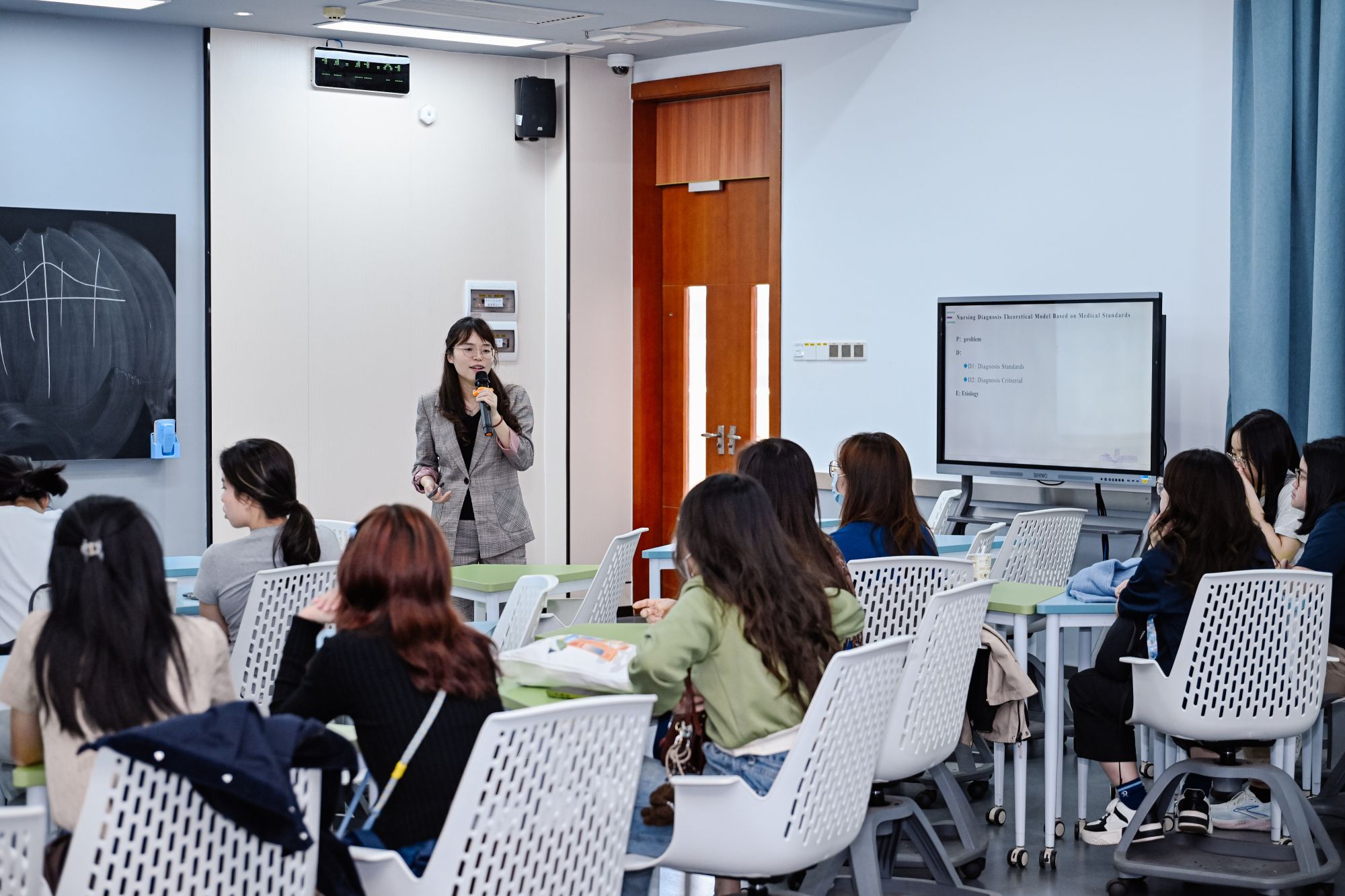 附属第三医院夏振兰老师以“一例青年失禁患者的整合护理实践”为题,分享了专科护理中的典型个案与人文关怀;吴伟珍老师则围绕“基于电子健康应用的妊娠期糖尿病管理”,系统阐释了数字化工具在临床照护中的落地路径与成效,生动呈现科技赋能护理的专业前沿。案例分享结束后,各小组围绕“整合照护的机遇与挑战”展开热烈研讨,同学们结合所学理论与案例中的实践经验,各抒己见、深入交流,在思维的碰撞中进一步深化了对整合照护理念的理解,实现了理论与实践的深度融合。