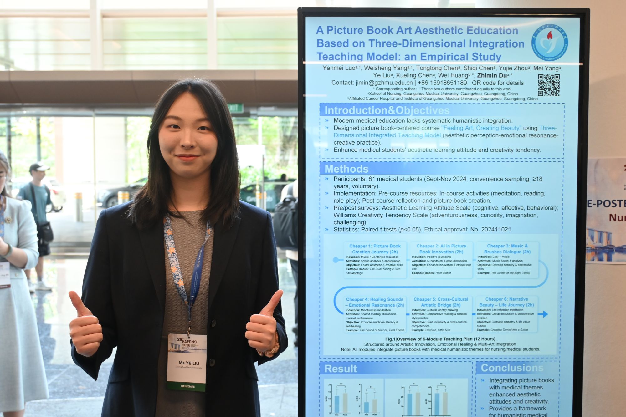 博士研究生陈付蓉、2023级本科生刘烨、2024级本科生林敏晶三名学生代表参会,通过口头报告和电子海报展示等形式,与海内外同行深度交流研讨,展现了广医护理学子的专业风采与学术素养。