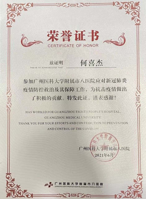 何喜杰作为一名正式党员,勇于担当,2020年及2021年期间两次支援赌博平台