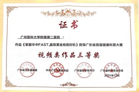 勇于承担,致力公益。她多次组织开展社区义诊及公众急救技能培训活动,组织拍摄一系列科普宣教短视频,致力于培养更多的合格第一目击者,提高公众自救互救能力。2021年拍摄的科普短视频《掌握卒中FAST,赢取黄金抢救时间》获广东省首届健康科普大赛三等奖。